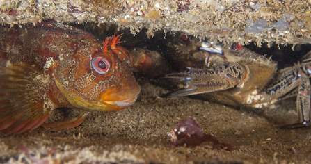 Tompot blenny Buster evicts a crab © Paul Naylor / Marine Photo