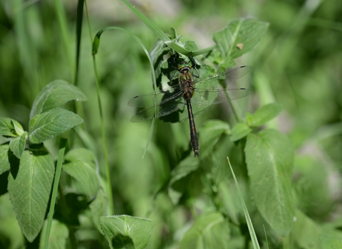 The downy emerald is one of three species of emerald dragonfly found in the UK. Although they all have a very limited distribution, the downy emerald is the most widespread, found in scattered locations from southern England to the highlands of Scotland. Downy emeralds are usually encountered around ponds and lakes close to woodland, with some overhanging trees. Their peak flight season is between May and July, and they will take to the wing in cooler, windier conditions than many other dragonflies.Males patrol the edges of their chosen waterbody, flying fast and low as they search for females. They rarely settle on perches, but often hover for a short while. They're highly territorial and will regularly clash with other dragonflies that come too close, attacking different species as well as other downy emeralds. After patrolling for a while, they dart off into the trees to feed, returning to the water later on to patrol again.