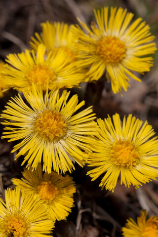 Looking like a short dandelion, but with a much rounder middle, colt's-foot is a 'weed' of waste ground and field edges that brightens up early spring with its sunshine-yellow flower heads.